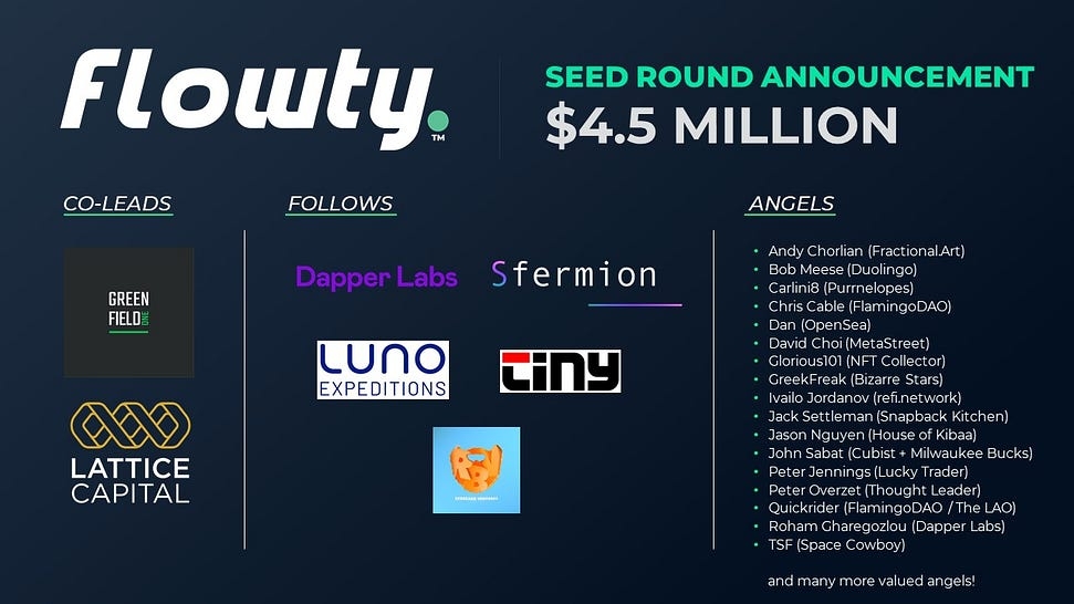 The flowty team is incredibly excited to announce the close of our first fundraising round, co-led by Greenfield One and Lattice Capital